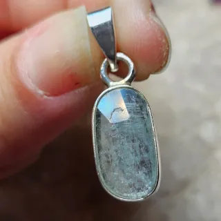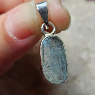 Precioso colgante de plata de ley 925 y cianita verde. Medida 2,6×0,7 cm con el engarce. Se entrega con bolsita para regalo.