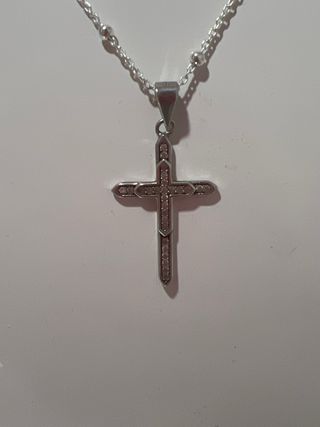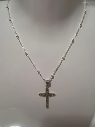 Elegante cadena con colgante en forma de cruz. - Fabricado en plata de ley. - Diseño con pequeñas cuentas en la cadena.
