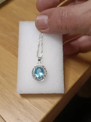 Nuevo Ver fotos Precioso colgante de plata de ley 925 con Cristal Austriaco central. SELLO PLATA EN CADENA Y COLGANTE - Diseño ovalado con detalles calados. - Cadena de plata tipo rolo. - Sello 925 visible.