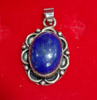 Antiguo Colgante de Plata de Ley 925 con Piedra Natural de Lapizlazuli. Sin Cadena.