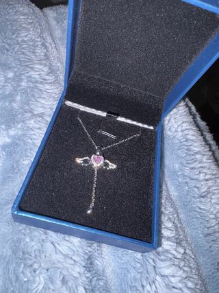Collar con un diseño delicado y romántico. - Colgante en forma de corazón con alas. - Detalle de circonitas en las alas. - Cadena fina plateada. Y pulsera de hombre con infinito 15 por cada uno no te quedes sin el tuyo