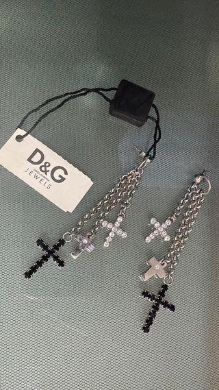 Pendientes Unisex colgantes de la marca Dolce & Gabbana con diseño de cruces. Diseño con múltiples cadenas plateadas. Cruces adornadas con pequeñas piedras Nuevos, con etiqueta NO ACEPTO OFERTAS