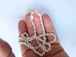 Elegante cadena de plata con un diseño delicado y versátil. Perfecta para combinar con tus colgantes favoritos o para llevar sola.Longitud 55cm ,grosor 5mm,25 gr Tanto para hombre como mujer - Material: Plata - Color: Plateado