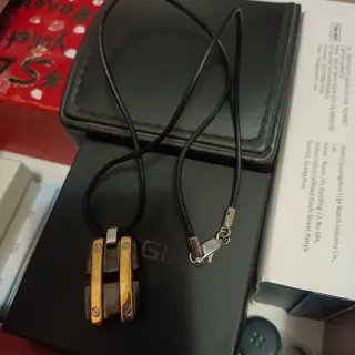 Colgante con cordón para hombre, con un diseño moderno y elegante. - Pieza central con detalles en negro y plateado. - Cordón resistente para uso diario. Va con su caja original