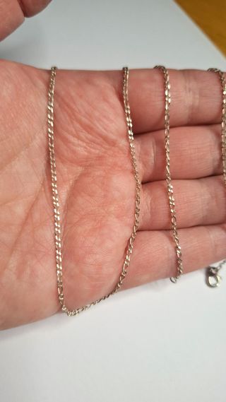 Elegante cadena fina de plata de ley 925 con diseño Fígaro o de eslabón alterno. Diseño clásico y popular. - Longitud de 50 cm. Ancho de 2mm. La medida ideal para que tenga una caída bonita sobre el pecho, perfecta tanto para hombre como para mujer. Se puede usar sola o con un colgante. - Diseño 1x1: Alterna un eslabón corto con uno largo. Es una variante muy elegante de la cadena programada clásica, perfecta para quienes buscan algo diferente y con estilo. Hago envíos rápidos por Wallapop o entrega en mano. ¡Para cualquier cosa escríbeme! 📩 ACEPTO OFERTAS.