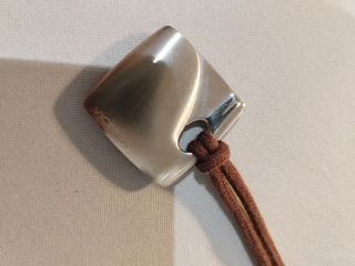 Colgante para hombre de la marca Breil. Fabricado en acero inoxidable matizado 📐📏Medidas: 39 x 14 mm Cordon negro redondo de piel de 46 cm Cierre de acero Embalaje original y con su certificado de autenticidad.