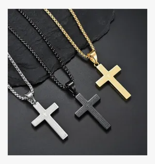Conjunto de tres collares con colgante de cruz. - Diseño de cruz con cadena. - Acabados en negro, dorado y plateado.
