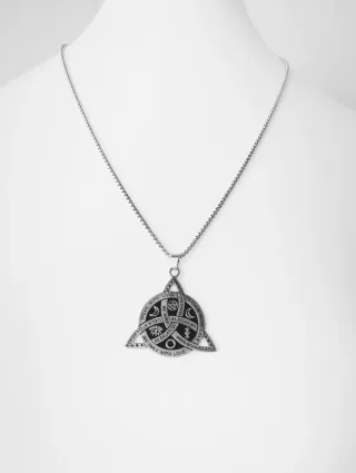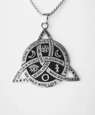 Triqueta Celta color plateado con Inscripciones Amunleto de Protección. Nuevo, nunca usado. Todo en Acero Inoxidable Antialérgico. Cadena 60 cms. Colgante 3,5 cms. de diámetro. No se pone feo, se puede mojar, no se oxida ni se deteriora. Reverso en Acero Pulido Liso. Unisex, para hombre o mujer , aunque ancestralmente era el símbolo de protección de las mujeres. Más modelos en mi armario, cualquier duda no dudes en preguntar, responderé lo antes posible.