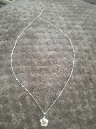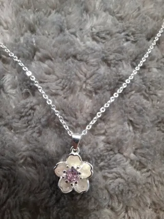 Elegante collar de plata para mujer con un delicado colgante en forma de flor. El centro de la flor está adornado con una pequeña piedra de color rosa. - Colgante con diseño de flor. - Detalle de piedra rosa en el centro. - Cadena de plata. Ideal para regalo