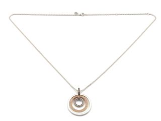Collar de mujer con detalles en acero. - Diseño elegante con colgante. - Combina tonos dorados y plateados.