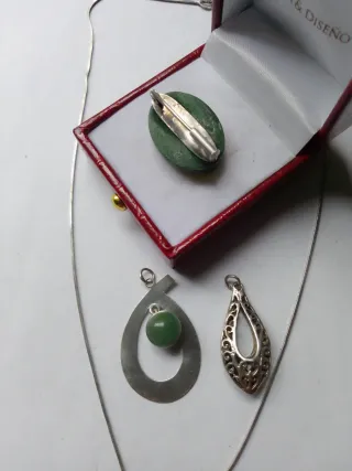 Collar de plata con colgante y piedra verde