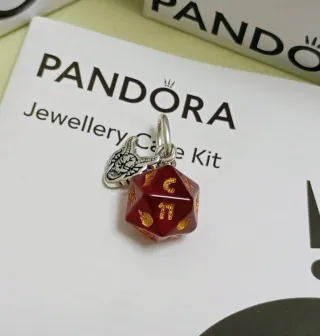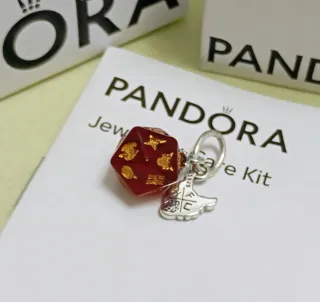 Pandora Charm Dado Dragón Corazón Rojo Plata