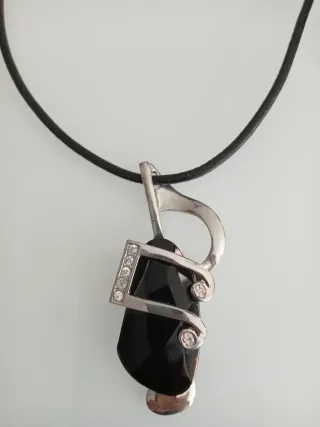 Colgante con diseño de nota musical. - Detalle de piedras brillantes. - Cordón negro de cuero. - Más productos muy interesantes en mi perfil.