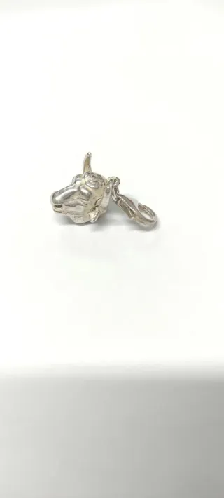 Colgante con forma de cabeza de toro, ideal para los amantes de la astrología o el signo de Tauro. Un detalle único. - Diseño detallado de cabeza de toro. - Acabado en plata.
