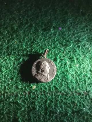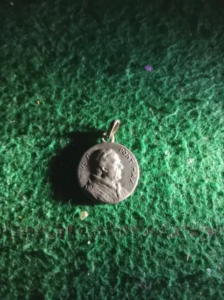 Medalla religiosa de plata con un retrato. - Diseño detallado. - Cierre para colgar.