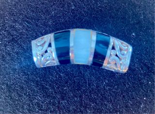 Elegante colgante tubular de plata 925 con un diseño moderno. Combina detalles en negro y blanco nacar - Material: Plata 925. - Diseño: Tubular con incrustaciones - Detalles: Motivos en filigrana parte trasera