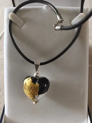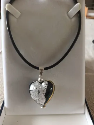 Colgante con forma de corazón y detalles en plata de ley 925mm.Cordon cuero y plata de ley - Diseño único con incrustaciones. - Cierre seguro.