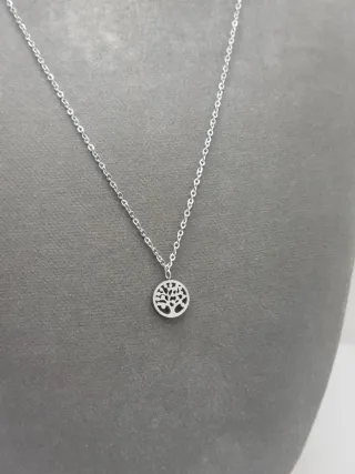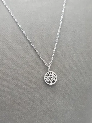 Elegante colgante con diseño de árbol de la vida. - Cadena fina y delicada. - Colgante con silueta de árbol. - Acero quirúrgico. - Acabado plateado.