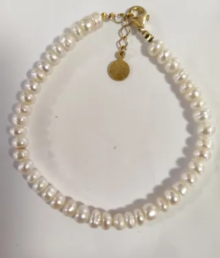 - Perlas de forma botón. - Cierre de mosquetón. - Detalle de medallón colgante. Elegante pulsera de perlas naturales con forma de botón. La cadena y los cierres son de plata 925. Ver tamaño fotos - Perlas de agua dulce. - Cierre de mosquetón. - Extensor para ajustar la medida. Sólo envío inpost locker gracias