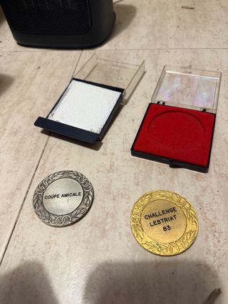 Preciosas medallas de santos, ideales para devoción o colección. - El lote incluye 13medallas doradas y 10 plateadas. - Las medallas doradas tienen un diseño rectangular con imágenes de santos. - Las medallas plateadas son ovaladas con un borde decorativo. - Todas las medallas se ven en buen estado.