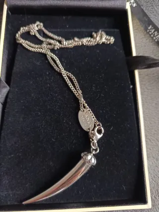 Elegante colgante de la marca Yanes. - Diseño con forma de colmillo. - Cadena de plata. - Incluye su caja original.