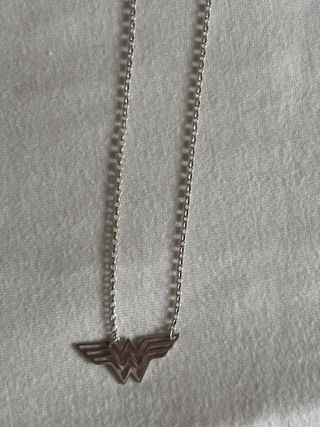 Elegante colgante con el icónico símbolo de Wonder Woman. - Diseño recortado. - Cadena fina de plata.