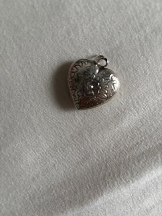 Colgante con diseño de corazón. - Elaborado en plata. - Detalle floral grabado en relieve.