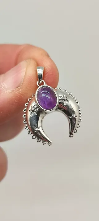 Precioso colgante de plata de ley 925 y amatista. Medida 2,8×2,1 cm con el engarce. Se entrega con bolsita para regalo.