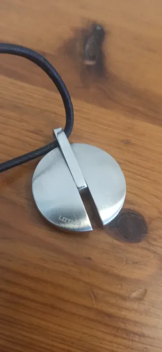 Elegante colgante de la marca Lotus con un diseño moderno. - Colgante de metal plateado. - Cordón negro. - Cierre de seguridad.