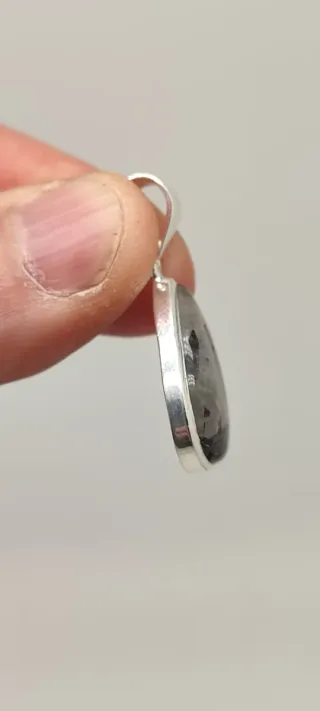 Elegante colgante de plata de ley 925 con cuarzo y turmalina. Medida 3,5×1,8 cm con el engarce. Se entrega con bolsita para regalo.