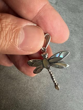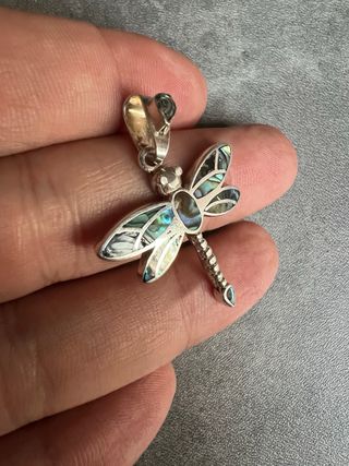 Colgante libélula en plata 950 incrustados con concha marina abalón natural. Hechos a mano por una familia de artesanos del valle sagrado en Perú. Medidas 4 cm x 3 cm Recibirá el colgante que se muestra en las imágenes individuales presentado en bolsita de tela Más joyería en plata incrustada y artesanía de los Andes y la Amazonía peruana disponibles en nuestro perfil Enviamos a toda España, Italia y Portugal