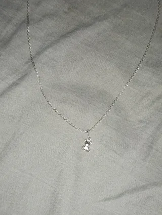 Elegante cadena de plata 925 la cadena mide 50cm con un delicado colgante en forma de osito. - Material: Plata 925. - Diseño: Cadena fina con charm de osito.