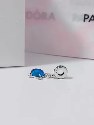 Este charm de Pandora tiene forma de tortuga con una piedra azul. - Detalle de pequeñas circonitas. - Cierre con logo de Pandora.