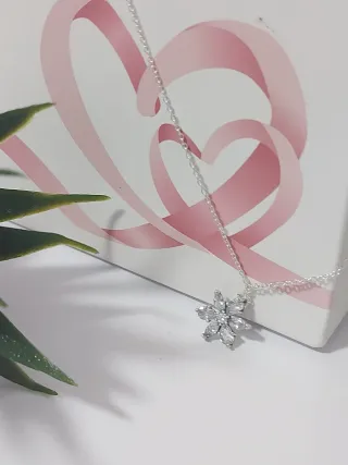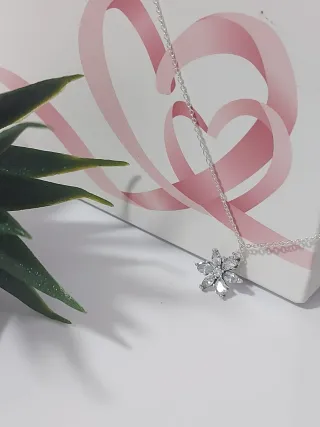Elegante collar de la marca Pandora con un delicado diseño de flor. - Colgante con forma de flor. - Adornado con circonitas brillantes. - Cadena fina de plata.