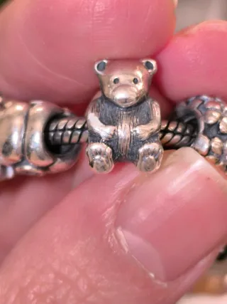 Charm de plata con forma de osito. - Diseño detallado de oso. - Compatible con pulseras Pandora.
