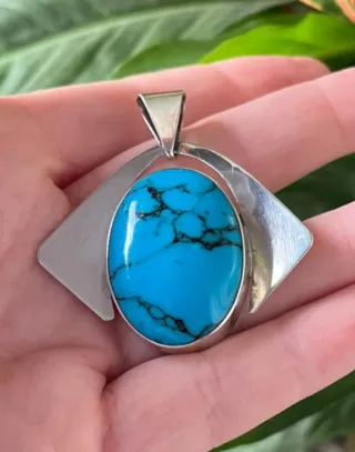 Bonito colgante de plata de ley 925 y turquesa ostra. Medida 3,7×1,8 cm con el engarce. Se entrega con bolsita para regalo.