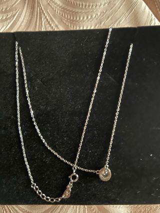 Elegante collar de la marca Swarovski. - Diseño delicado con colgante. - Acabado plateado brillante.