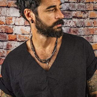 🚨 SOLO ENVÍOS 🚨 Collar masculino multicapa en tonos negros, con cuentas, cordón y cadena metálica, rematado con colgante decorativo. Diseño con carácter, ideal para hombres con estilo propio y presencia marcada. Perfecto como regalo original para hombre, look urbano, rock o boho. Queda muy bien puesto, como se aprecia en las fotos reales del artículo. ✔️ Estilo masculino ✔️ Cierre ajustable ✔️ Ligero y cómodo ✔️ Muy buen estado 📮 Envíos solo por Wallapop.