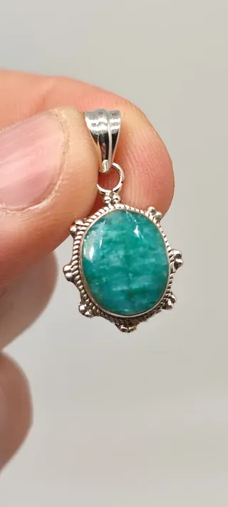 Elegante colgante con piedra crisocola natural en forma de lágrima, engastada en plata 950 - Crisocola de tonos verdes y azules. - Colgante de plata. - Diseño en forma de lágrima.