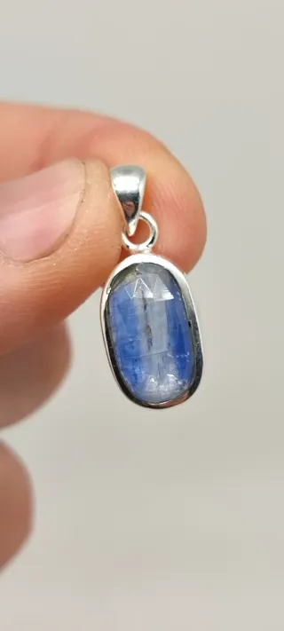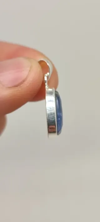 Precioso colgante de plata de ley 925 y cianita azul. Medida 2,6×1 cm con el engarce. Se entrega con bolsita para regalo.