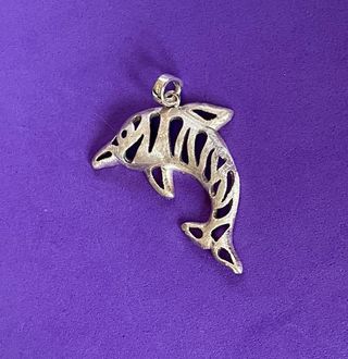 Delfín de gran tamaño 43 x 34 x 5 mm de plata 925 matizada. UNICO. UNISEX.