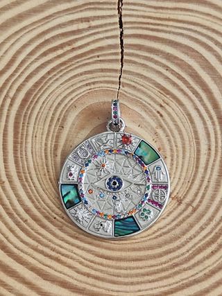 ✨ Colgante Rueda de la Fortuna ✨ Plata de primera ley 925 rodiada con símbolos cósmicos. Un amuleto poderoso que atrae suerte, abundancia y protección espiritual. 🌌🍀 Mide 30mm. Solo envíos. Somos tienda online.