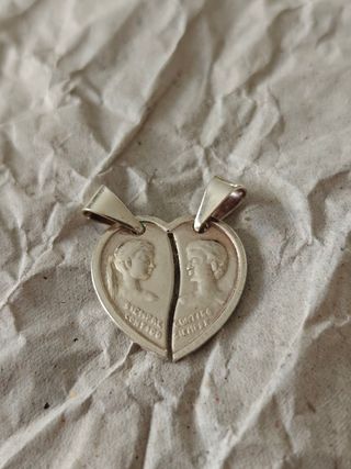 ✨Colgante de corazón partido de plata✨ Este es un collar de corazón partido muy especial, hecho de plata y diseñado para ser compartido. Al juntar las dos mitades, se forma un corazón completo que simboliza una conexión única. Cada pieza tiene el perfil de una persona y, en la parte de abajo, las inscripciones "SIEMPRE CONTIGO" y "CONTIGO SIEMPRE". Este es un detalle atemporal y personal, ideal para regalar a esa persona que completa tu vida. El colgante está completamente nuevo y en perfectas condiciones. Incluye los dos colgantes, uno para cada persona.