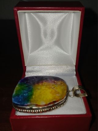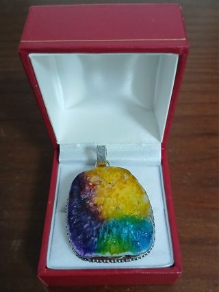 Colgante con piedra de cuarzo con un diseño de arcoíris. Ideal para regalo, se envía en bolsita tipo organza - Piedra de cuarzo. - Diseño multicolor. - Plata 925