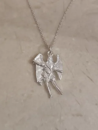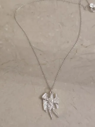 ✨ Collar San Miguel Arcángel ✨ En plata de primera ley 925, elegante y lleno de fuerza espiritual. San Miguel Arcángel es el protector por excelencia contra las energías negativas, la envidia y el mal de ojo, brindando valentía, fe y protección divina. 💫 🔹 Ideal para llevar siempre contigo o regalar a quien quieres cuidar. Medida cadena: 40cm. Medida colgante: 27mm (alto). SOLO ENVÍOS. SOMOS TIENDA ONLINE.