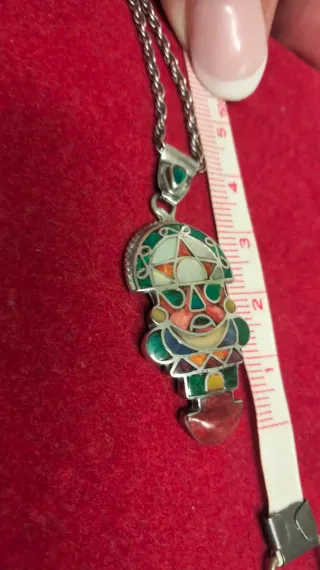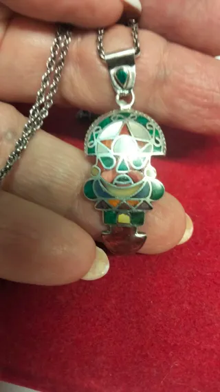 Colgante con diseño inspirado en la cultura azteca. Una pieza llamativa y llena de color. Con incrustaciones de piedras preciosas, plata 950. Posibilidad de comprar la cadena en otro anuncio. - Elaborado en plata. - Detalles en esmalte multicolor.