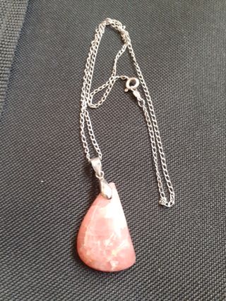 Colgante con piedra natural de rodocrosita y engarce en plata, cadena de plata. - Diseño único. - Acabado pulido de la piedra que mide 3,5 x 2 cms. La cadena 45, 5 cms. Tengo mas artículos en mi perfil, pudiendose agrupar para abaratar costes de envío.