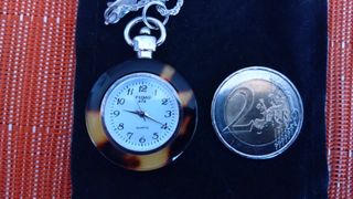 Precioso y Elegante reloj colgante, plata de ley 925% con borde en piedra semipreciosa Ojo de Tigre, incluye cadena con diseño de cuerda, en plata de ley 925% también. - Esfera blanca con números negros. - Mecanismo de cuarzo. - Longitud total aprox. 35 cm (colgante + cadena) Lleva su bolsita de tejido aterciopelado, funciona con una bateria al cuarzo (incluida). Una joya inusual y clásica para alguien con mucha clase y estilo.