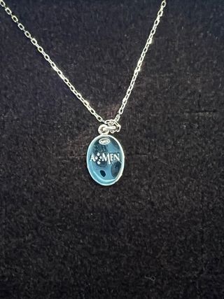 Colgante de la marca La Milagrosa con la palabra AMEN grabada. - Colgante en plata 925. - Diseño ovalado. - Acabado rodio. - Esmalte azul. - Circonitas #amenjoyas