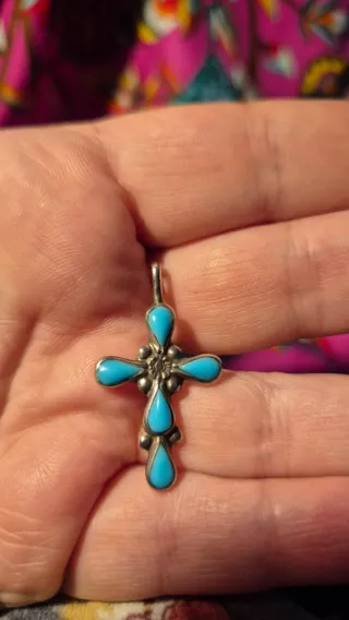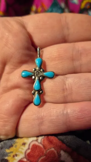 Colgante Cruz Plata y Turquesas